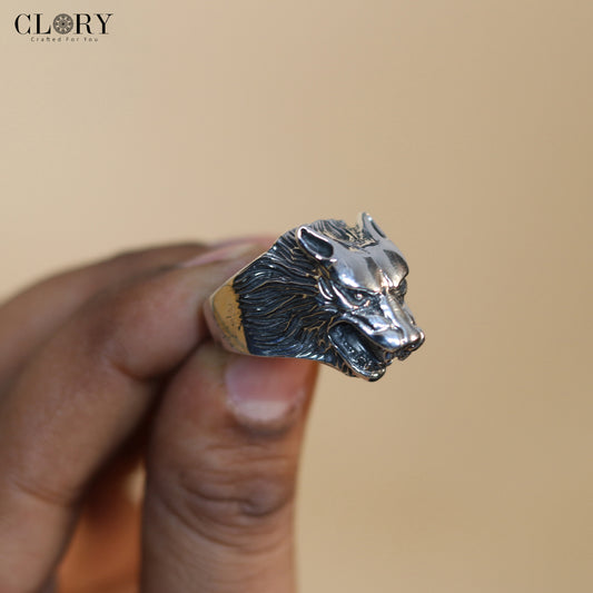 Lion face design men's ring